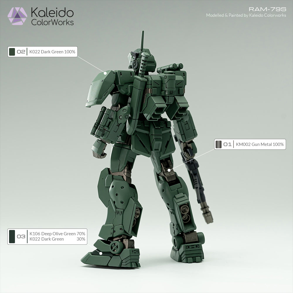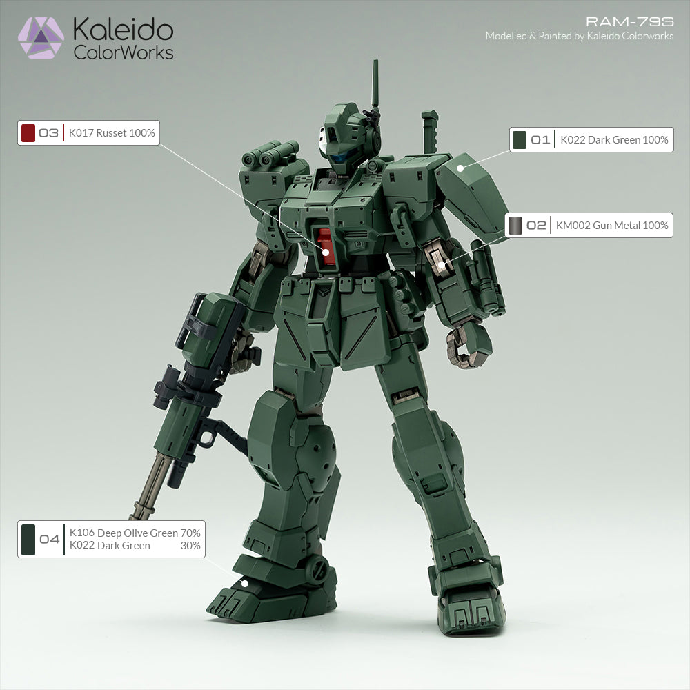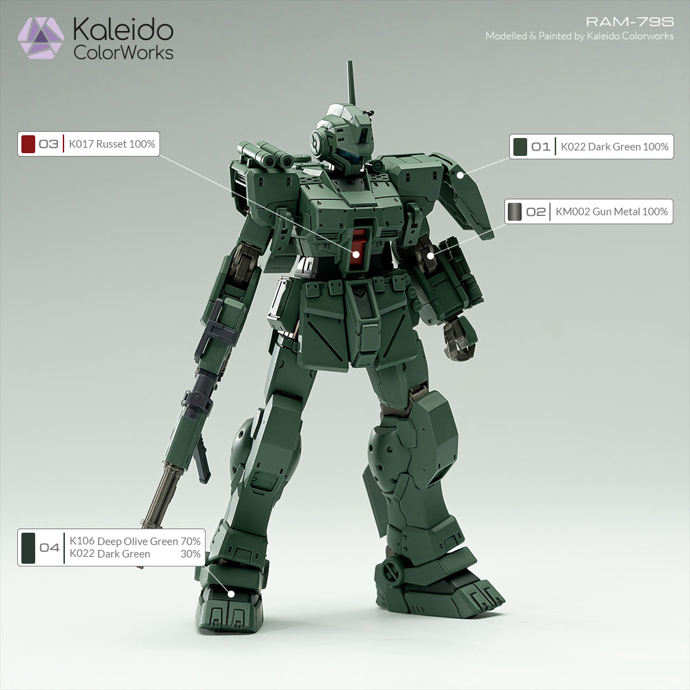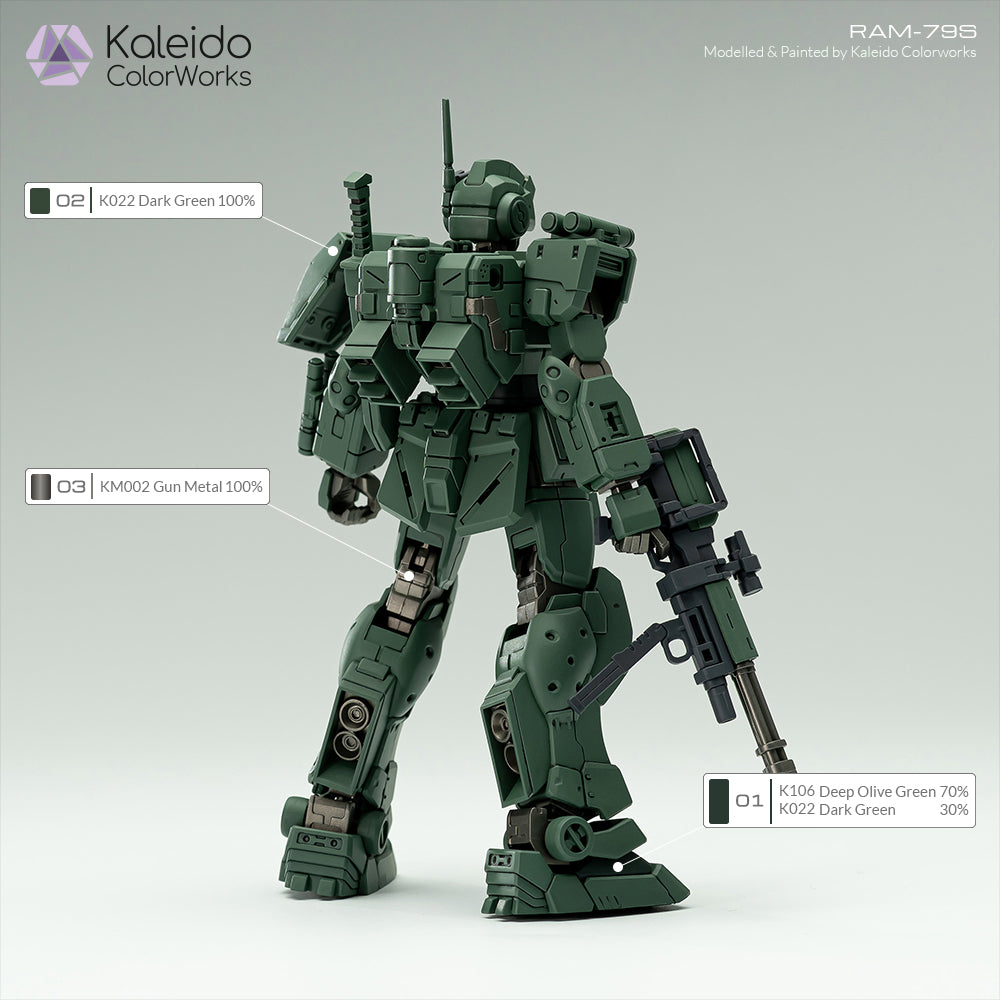 This is a recreation/repaint version of the AMX-011S ZAKU-III Gundam model kit from Bandai with colors from Kaleido Colorworks - Mecha Series.