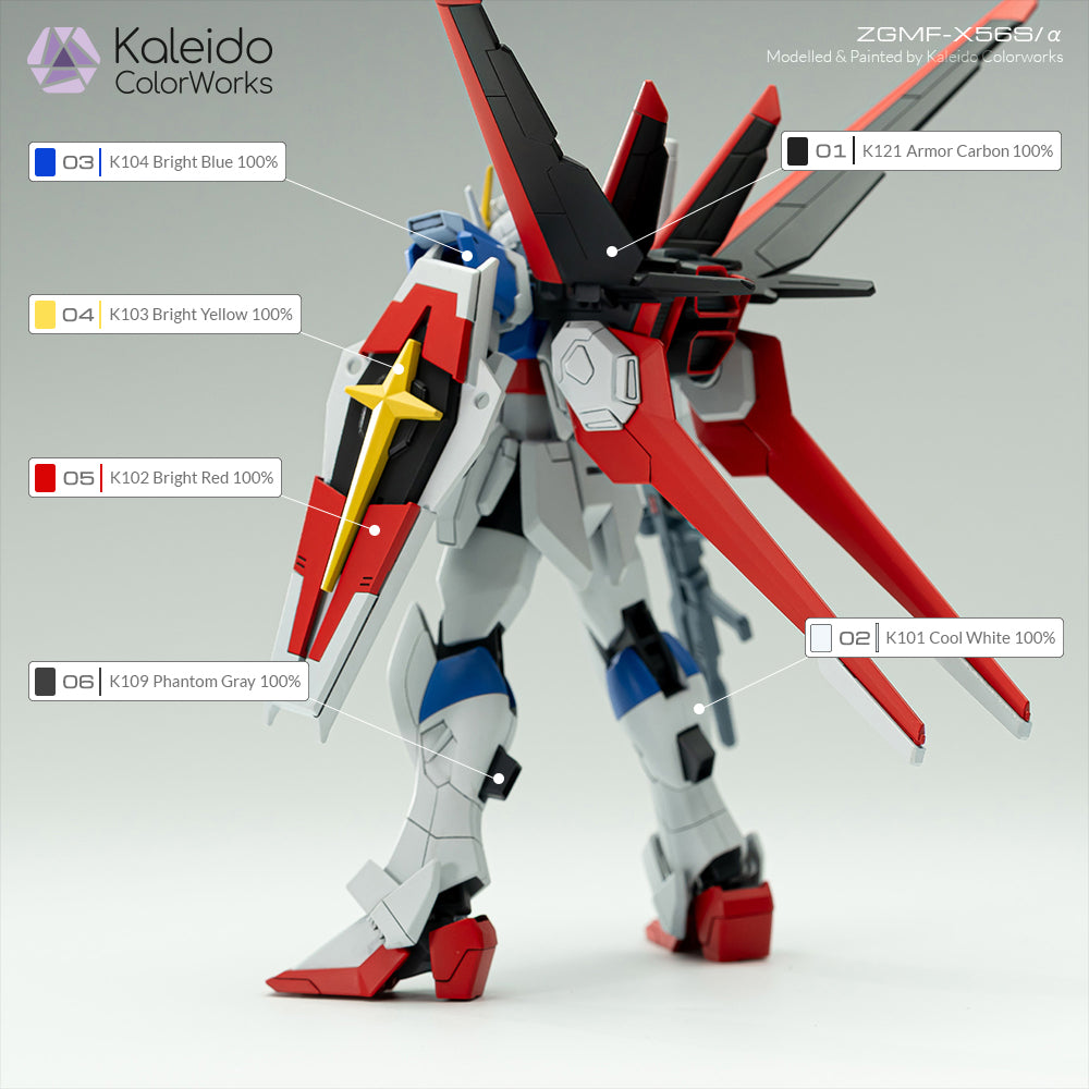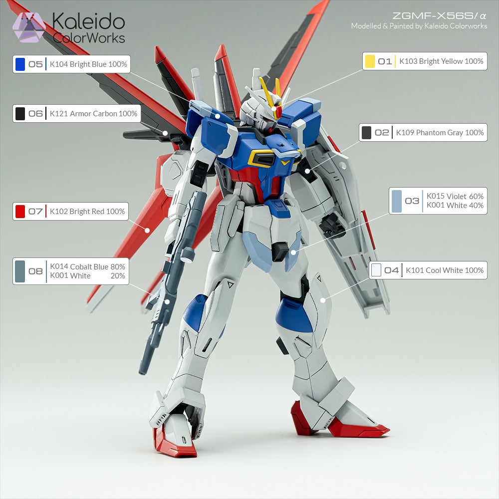 This is a recreation/repaint version of the ZGMF-X56S/a model kit from Bandai with colors from Kaleido Colorworks - Mecha Series.