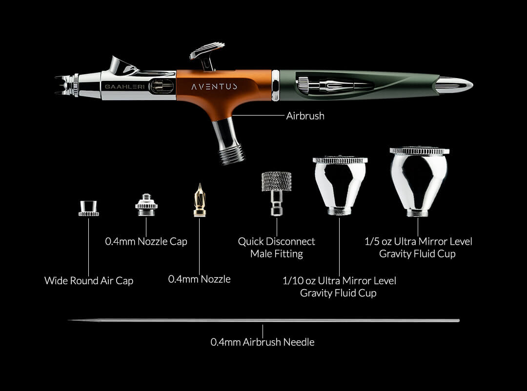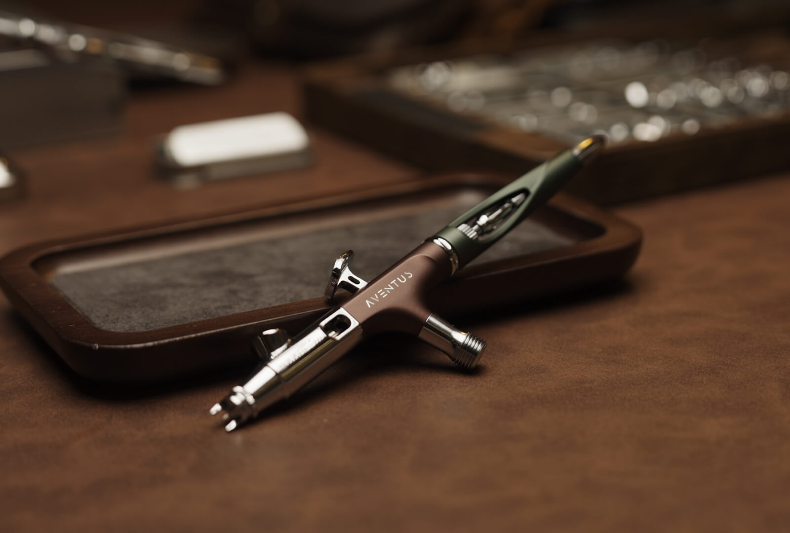Aventus redefines airbrush design with its three-part modular body, CNC-milled from a single block of aluminum — no welds, no seams.