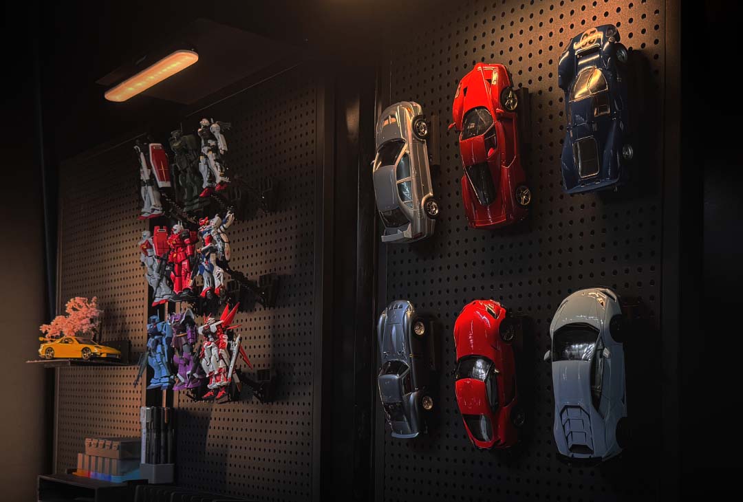 Watch how we transform our hobby workstation and how these pegboard stands are used to display our model kits!