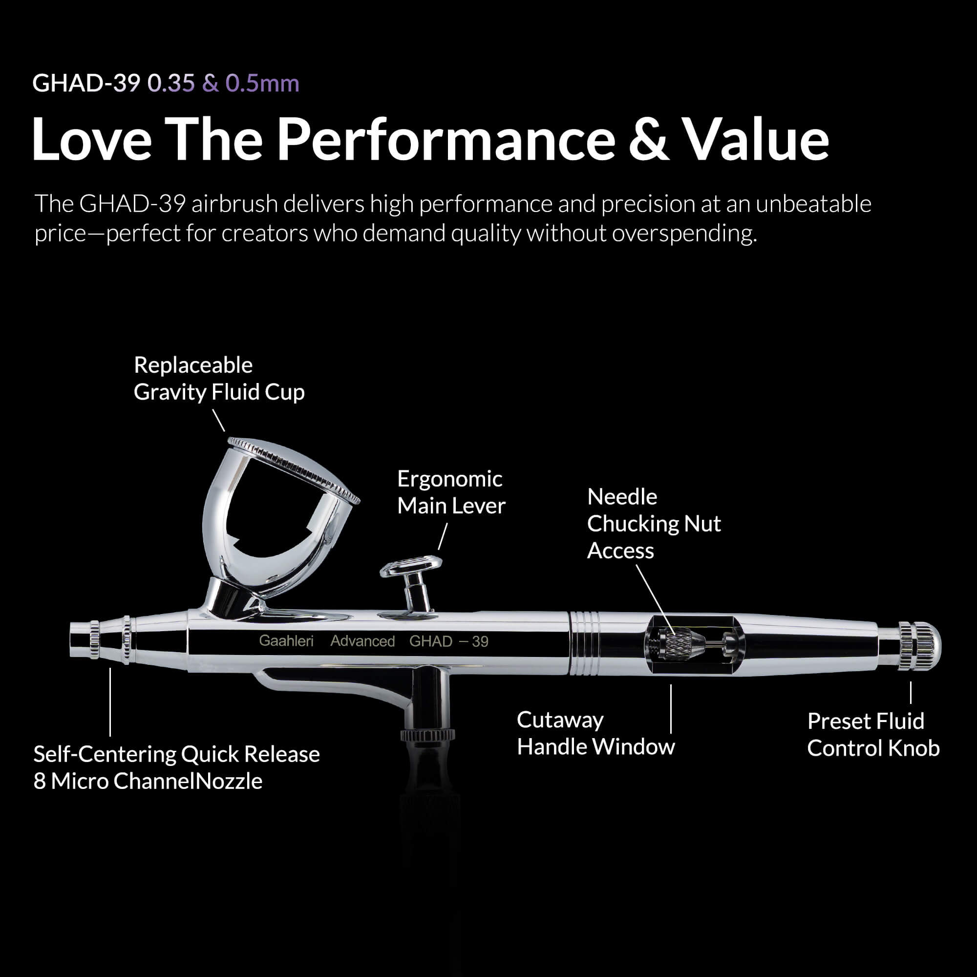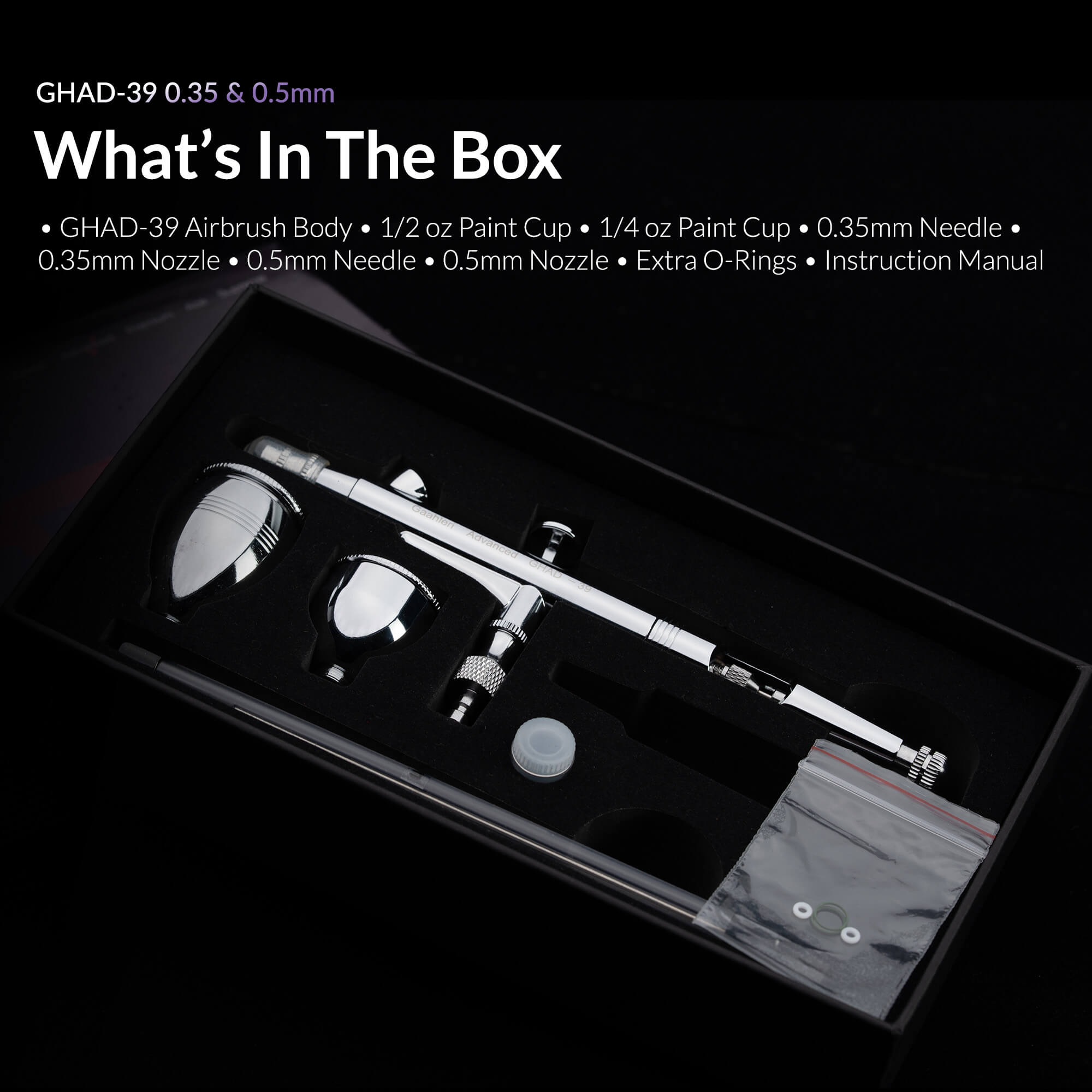Double Needle, Double Value: With options for both 0.35mm and 0.5mm needle nozzles, along with 8 Micro Air Channels, the GHAD-39 is versatile enough to handle fine detailing or broader applications with ease.