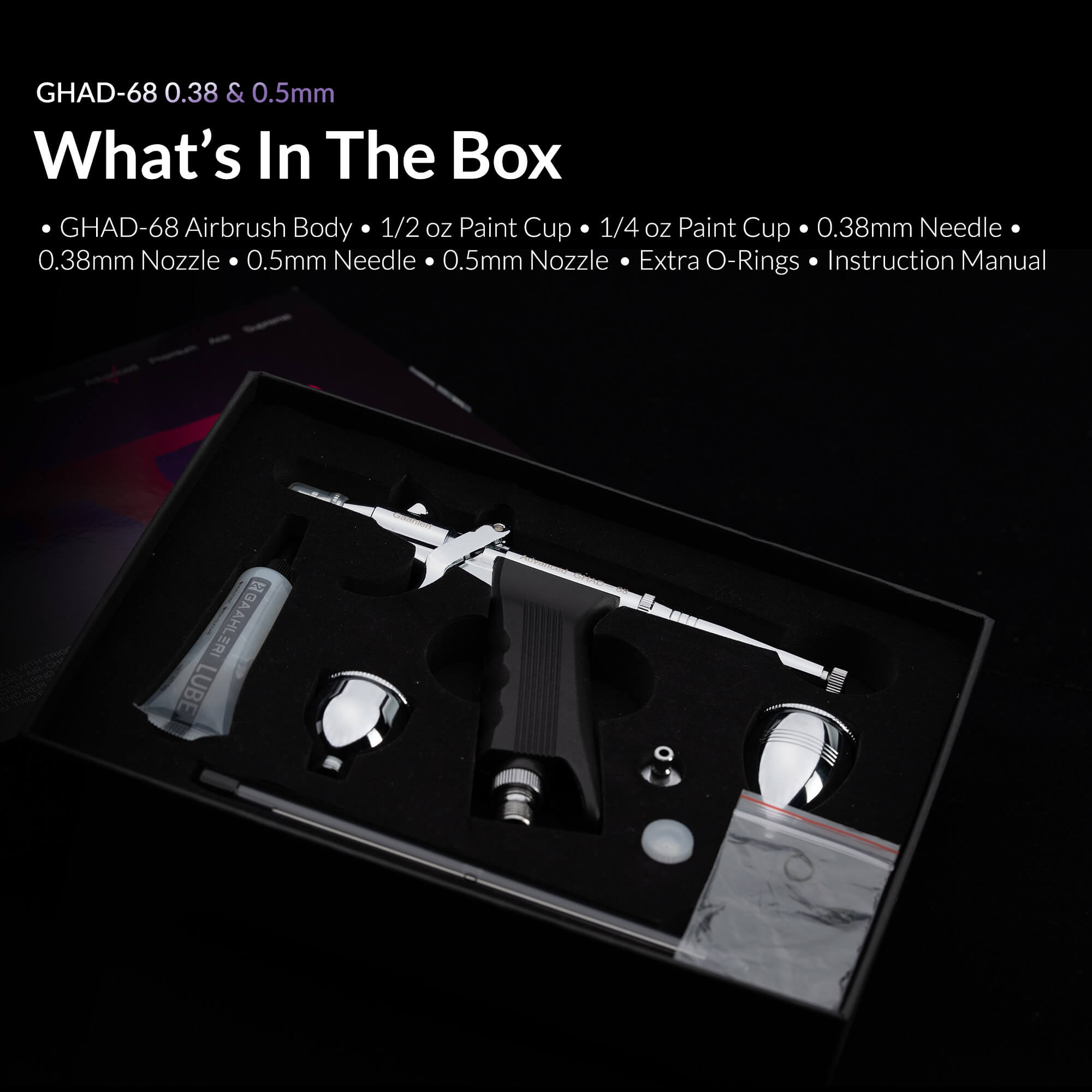 Versatile Usage: Whether you need fine arts detail with the 0.38mm needle or broader coverage with the 0.5mm option, the GHAD-68 adapts effortlessly to your airbrushing needs.