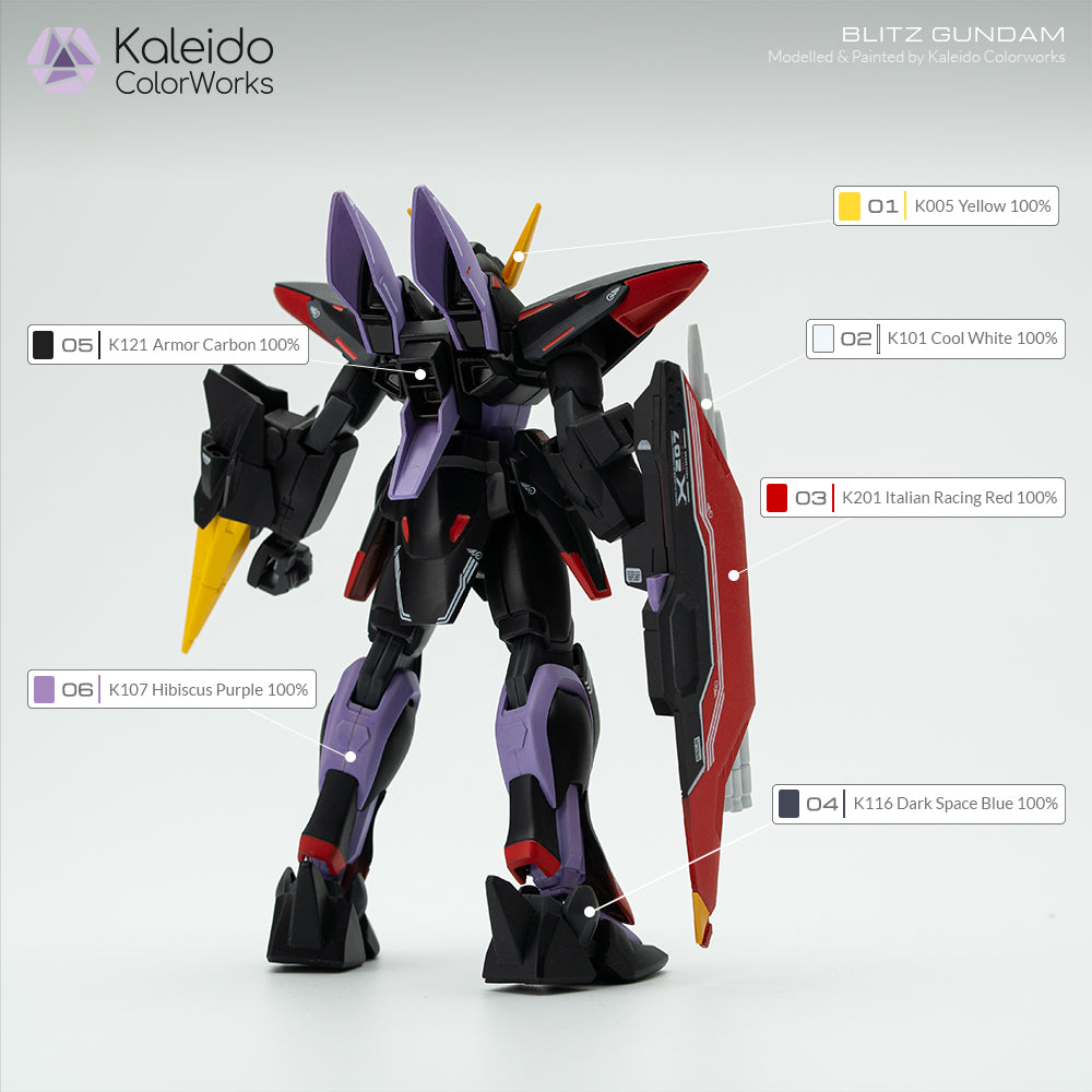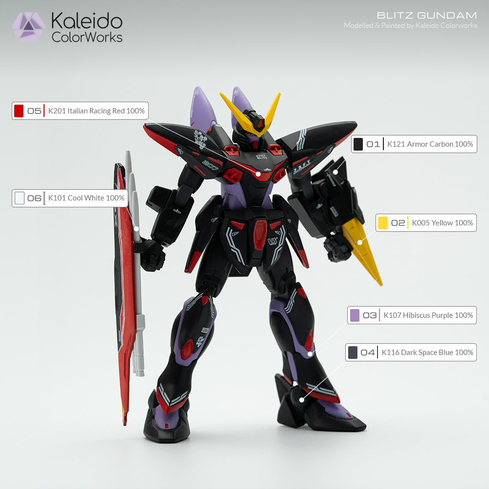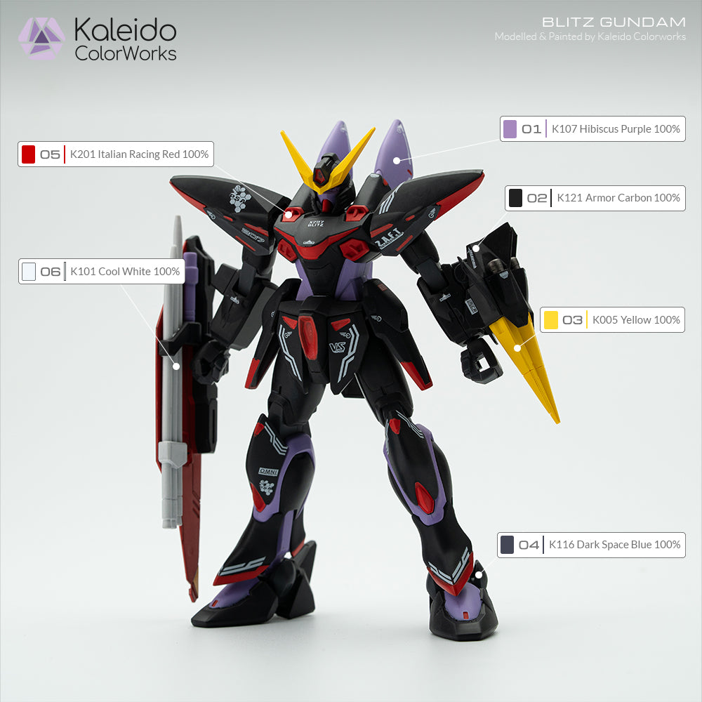 This is a recreation/repaint version of the GAT-X207 Blitz Gundam model kit with colors from Kaleido Colorworks.
