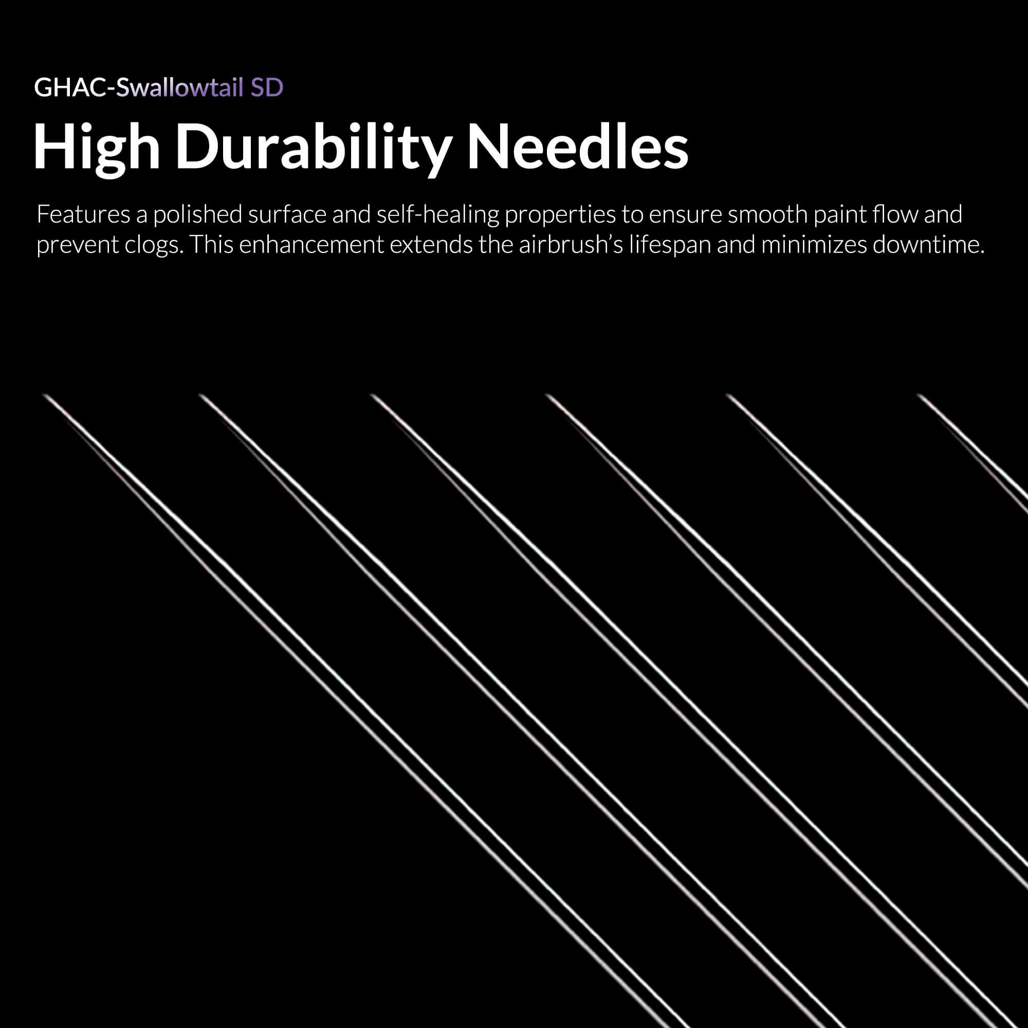 Engineered for durability and precision, the polished, self-healing needle ensures smooth paint flow, prevents clogs, and minimizes downtime, extending the airbrush’s lifespan.