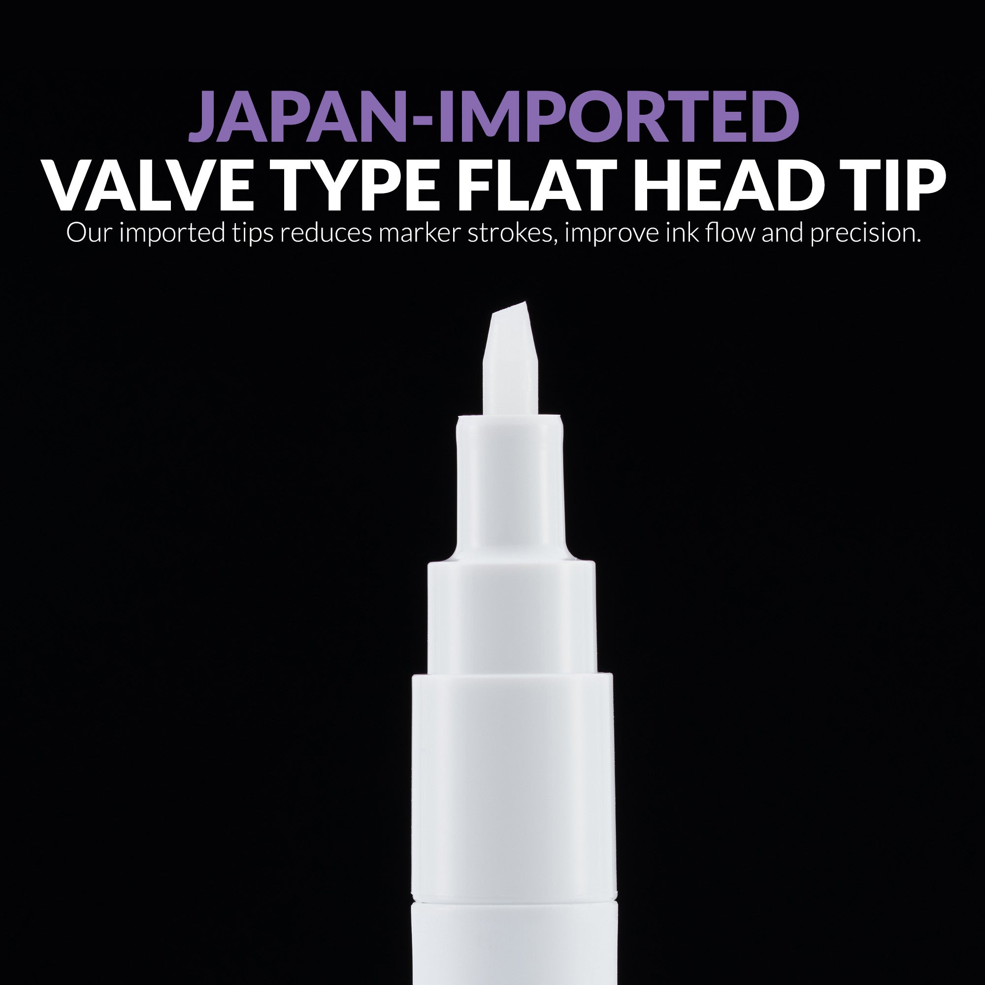 Japan-Imported Valve Type Flat Head Tip: Equipped with imported valve-type flat head tips, these markers ensure smooth ink flow, reduce marker strokes, and prevent sponge fibers from building up, giving you a professional-grade finish every time.