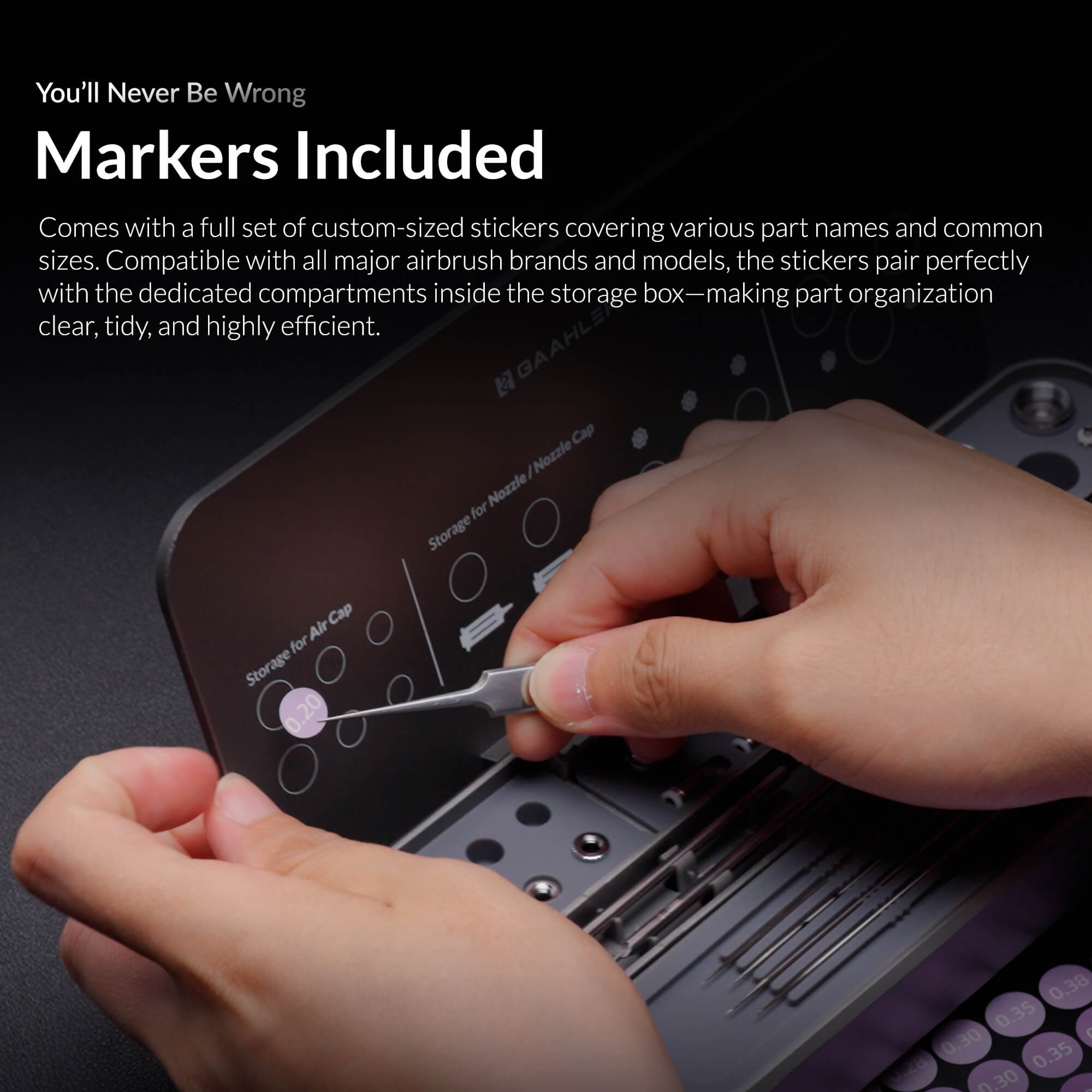 Comes with custom-fit silicone trays, nano anti-slip pads, and a full set of label stickers for clear, efficient organisation. Compatible with all Smartmallstore models, including Swallowtail and Mobius, as well as most major airbrush brands on the market.